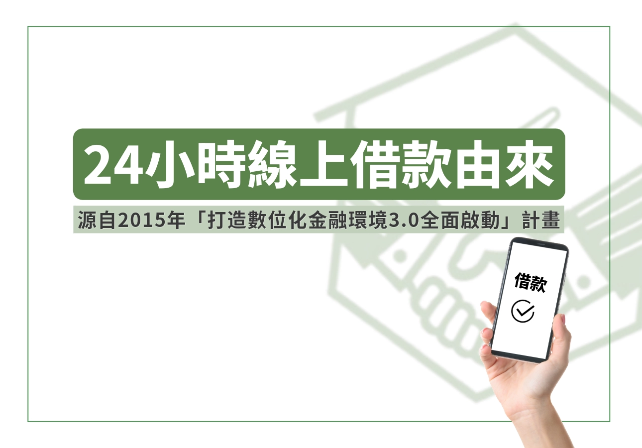 24小時線上借款的起源最早可以推到 2015年1月金管會的「打造數位化金融環境3.0全面啟動」計畫,