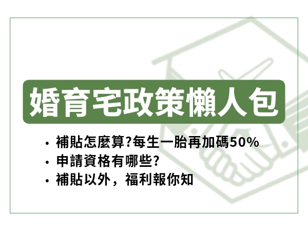 圖片擷取自:行政院全球資訊網什麼是「婚育宅」?不是蓋新房子,而是整合原有社宅資源很多人以為政府又要蓋一批新房,其實不然。所謂『婚育宅』,是把原本的社會住宅、租金補貼、包租代管等政策,針對新婚與育兒家庭做出強化設計。像是保留名額優先申請、租期保障更長、補貼還會加碼,讓剛成家的你在租屋上多一點選擇,也少一點壓力。婚育宅的申請資格有哪些?哪些家庭能申請?根據內政部公告,若你是「結婚未滿兩年」的新婚夫妻,或是育有 6 歲以下孩童的家庭,就具備申請婚育宅補貼的基本條件之一。接下來還需符合下列其他租屋與戶籍等條件,才能正式申請。所得限制放寬:家庭成員每人平均月收入不超過最低生活費 3.5 倍(原方案為 3 倍,已放寬讓更多人申請)。其他必要條件:需具備正式租賃契約(房東同意報稅)須為 租屋族(非自有住宅)申請戶籍需設於租屋地址同戶籍僅能有一戶申請若家庭成員名下已有自有住宅,將不符合申請婚育宅補助資格。婚育宅補貼怎麼算?新婚兩年內、每生一胎補貼再加碼 50%,最高補助翻倍!剛結婚、孩子又快出生,租金補助到底夠不夠?「婚育宅」補貼制度讓你真正感受到政府有在出力——只要在結婚兩年內申請,補貼直接加乘 1.5 倍;如果家裡有小孩,每多一胎再多加 50%。對手頭緊的新婚爸媽來說,這筆錢就是喘口氣的開始。怎麼加碼?直接算給你看:假設原本符合補貼資格、每月可領 6,000 元:結婚兩年內申請 → 加碼 50%:6,000 × 1.5 = 9,000 元育有 1 胎 → 再加碼 50%:9,000 × 1.5 = 13,500 元育有 2 胎 → 再加碼 50%:13,500 × 1.5 = 20,250 元育有 3 胎 → 再加碼 50%:20,250 × 1.5 = 30,375 元⚠️原始補貼金額依據「300億元中央擴大租金補貼專案」計算,不同縣市與家戶人數會有所不同。而且要特別提醒:婚育宅的補貼與入住資格皆為「專戶專用」,無法轉讓他人,僅限申請人及家庭成員使用。除了補貼,還有這些婚育宅福利婚育宅不只補助多,還有三大實質保障,讓你租屋更安心:優先入住社宅:政府新建社會住宅保留 20% 給婚育家庭,符合資格者可優先申請。租期最長 12 年:育兒家庭享有最長 12 年租期保障,孩子成長期間不用東搬西遷。修繕補助最多 6,000 元:如果你是租進包租代管的社宅、有小小孩在家,還能申請居家安全補助,像是裝個防撞條、防墜網這類爸媽最在意的配備,讓家裡住起來更安心也更放心。租屋保障再進化:政策也不只補貼,還打算動法條。現行《租賃住宅市場發展及管理條例》政府目前正規劃修法,針對婚育家庭的痛點,準備從制度面再強化幾件事:租期更穩定:未來可能會明定租約加續約至少能住滿 3 年,避免一搬再搬;漲幅不能亂來:房東續約時調漲租金,漲幅不能超過當期房租指數的年增率;保障設籍與補貼權利:房客該有的權益要保住,房東不能限制你遷戶籍,也不能禁止你申請租金補貼。補貼不只是錢,更是給你的「居住安全感」與其說婚育宅只是補助多,不如說它幫年輕家庭建立一套更有保障的居住環境——從錢、房子、制度三方面著手,讓成家的過程少一點煩惱,多一點穩定。如果你已經符合申請條件,別拖太久,早點提出才不會錯過補貼。至於租金/押金、貸款這類問題,想多一點彈性與空間,也能找【薪安貸款網】,簡單填寫表單免費諮詢,將有專業團隊協助,幫你輕鬆解決財務困難。