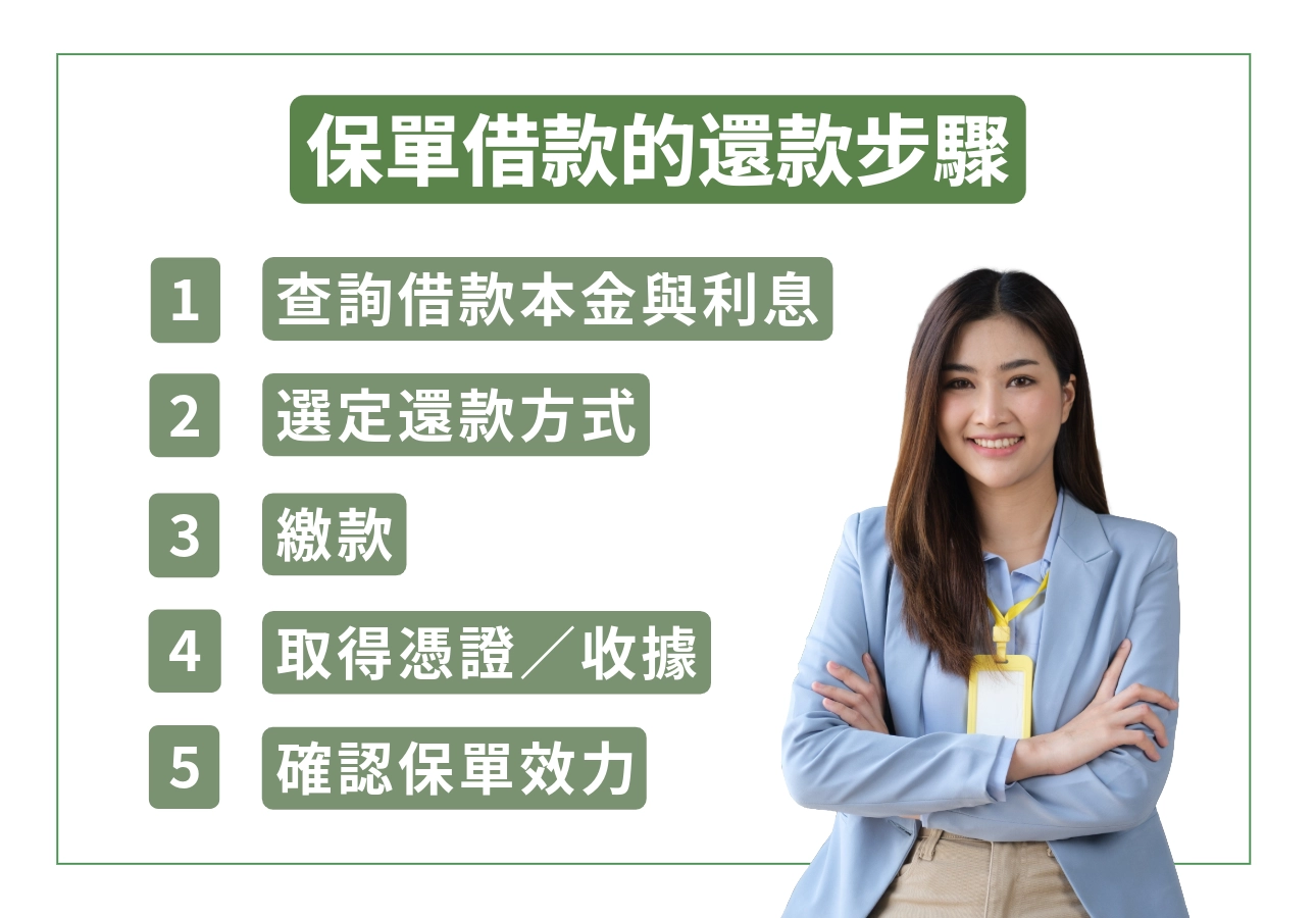 查詢借款本金與利息 | 在繳款前,先透過官網、客服或保戶平台查詢「未償本金 + 已生利息」。 |