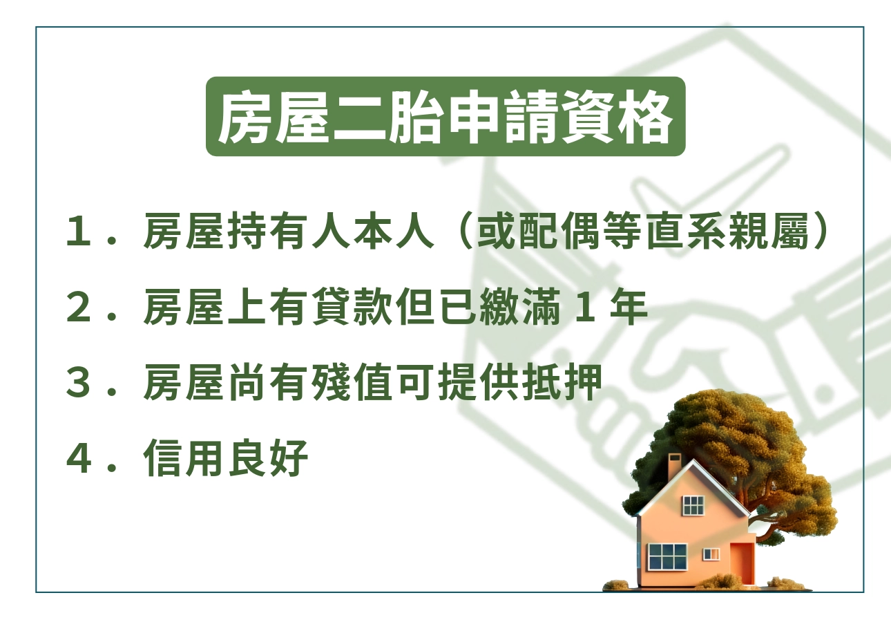 如果你的信用評分偏低、急需資金、或原房貸銀行不願增貸 → 可考慮房屋二胎作為補充資金來源。