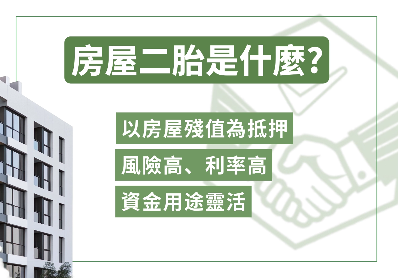 房屋二胎貸款簡單來說就是「已經有房貸在身,再用同一間房子再借一次錢」,這筆新的貸款就叫做「第二順位抵押貸款」,也就是我們俗稱的「二胎房貸」。